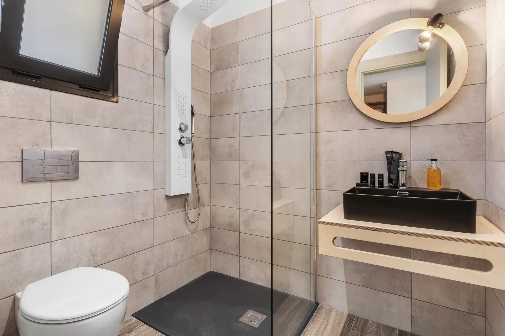 Our Double Room was designed to indulge in its comfortable amenities. The elegant surroundings are infused with the setting's cozy ambiance. The colors merge in a fine interior showcasing earthly tones. The convenient furnishing caters to visitor’s needs, offering a hospitable stay, including a lavish bathroom. This is a refuge to host your joyous moments, only at Sigma Luxury Rooms.