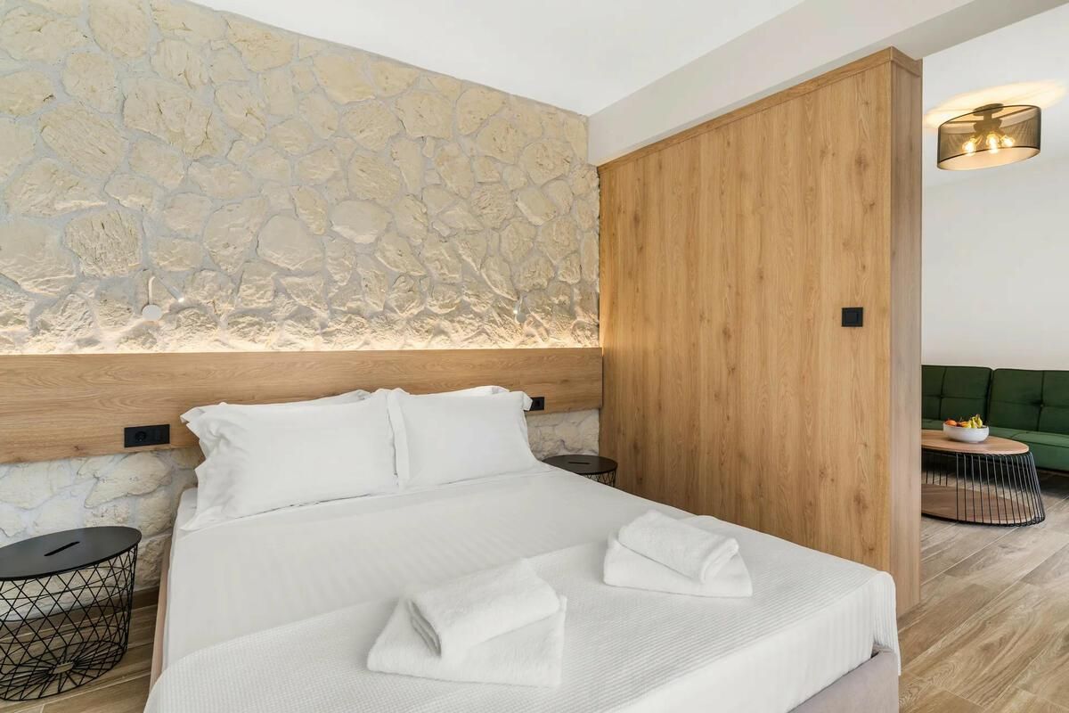 Our Junior Suite was designed to indulge in its comfortable amenities. The elegant surroundings are infused with the setting's cozy ambiance. The colors merge in a fine interior showcasing earthly tones. The convenient furnishing caters to visitor’s needs, offering a hospitable stay, including a lavish bathroom. This is a refuge to host your joyous moments, only at Sigma Luxury Rooms